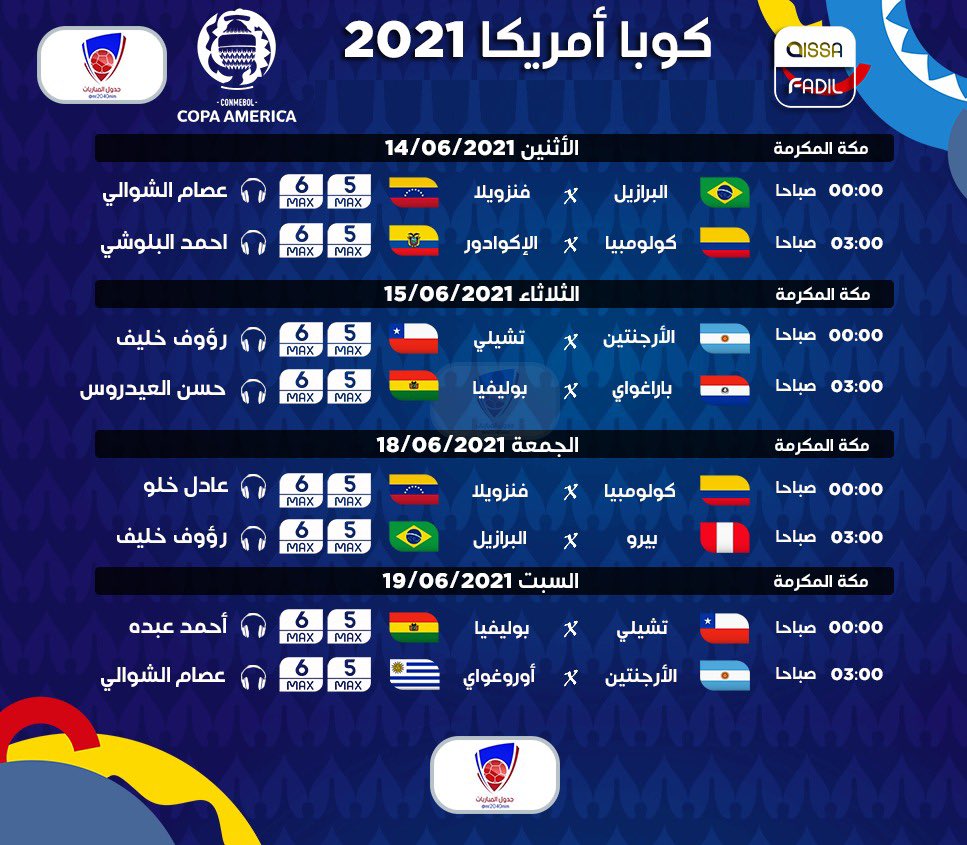 جدول المباريات On Twitter جدول معلقي مباريات كوبا امريكا 2021 الجولة الاولى و الثانيه حصريا على Bein Sports Max
