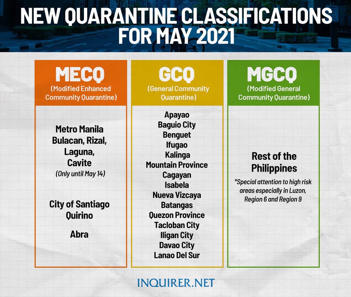 Inquirer On Twitter Heads Up Here Are The New Quarantine Classifications For May 2021 As Approved By President Rodrigo Duterte Visit Https T Co Edjvs4howc For Stories And More Https T Co Y5rn6wlo7d