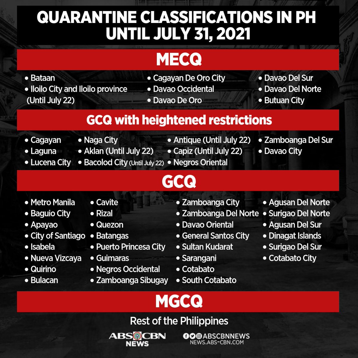 Alamin Mga Quarantine Classification Hanggang Hulyo 31 Abs Cbn News